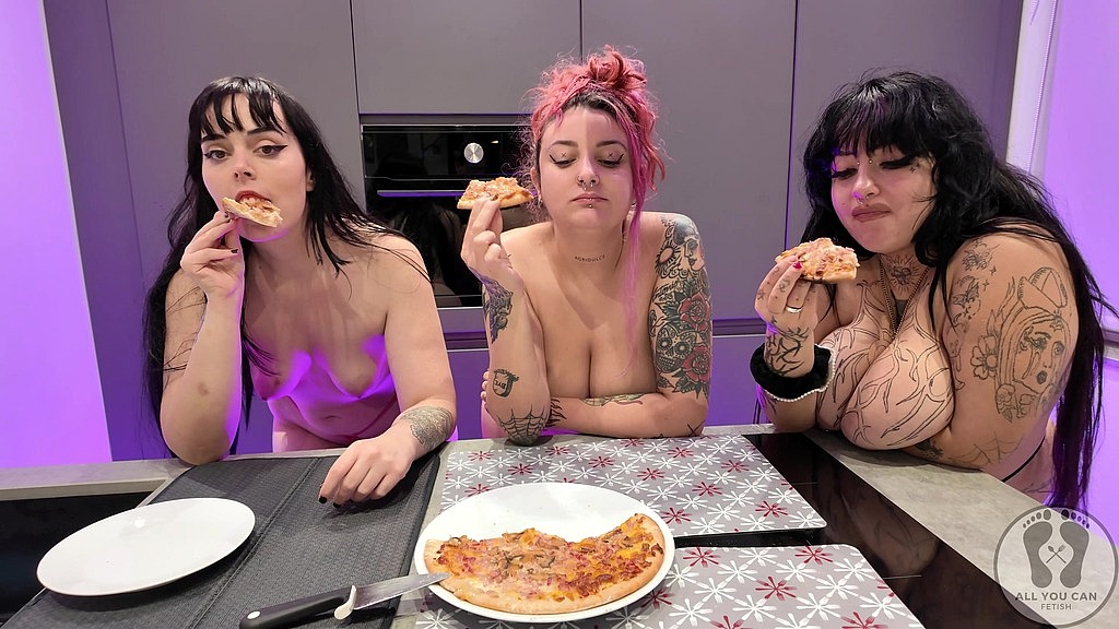 GIRLS: RUREKI71; REBECA ADDAMS ; DEEDEELOVE <br>IT S TIME FOR DINNER, TODAY WE HAVE A SUCCULENT PIZZA PREPARED FOR THESE THREE CHUBBY, BUT SIMPLY DELICIOUS GIRLS. THEIR PLUMP BODIES MOVE AND WIGGLE IN A VERY SEXY WAY, IT S WONDERFUL TO SEE THEIR TITS MOVING, THEY EAT THE PIZZA IN TOP LESS WHILE THEY SHOW US HOW THEY CHEW AND WALK AROUND THE KITCHEN WITH THEIR STRING THONGS AND THEIR BEAUTIFUL PAWG! (MR3_13)