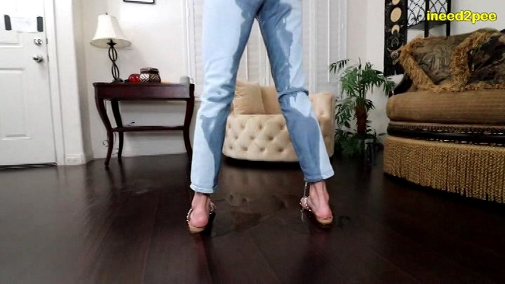 You ve seen a lot of Agatha Delicious wetting herself over the years but this is the first candid, interview style desperation video where we just chat about everything pee related (and even #2 related at the end) while she s struggling to hold all her pee in & keep her classic, light blue jeans dry. She does a great standing up pee pee dance and crotch grabbing until she can t hold it and with a huge gasp, loses bladder control into her panties and jeans! It s pouring out like a waterfall & making dark, pee streaks all the way down both legs, pee dripping off the jeans legs and making a huge pee puddle underneath. She sexily takes off her wet jeans to reveal her cotton pissy panties while we chat all things desperation.