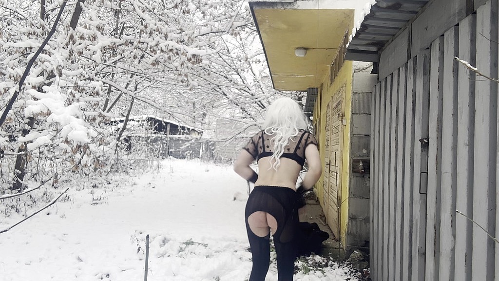 AMATEUR TRANS IN SNOW - PERVERT TRAIN DICK FLASH