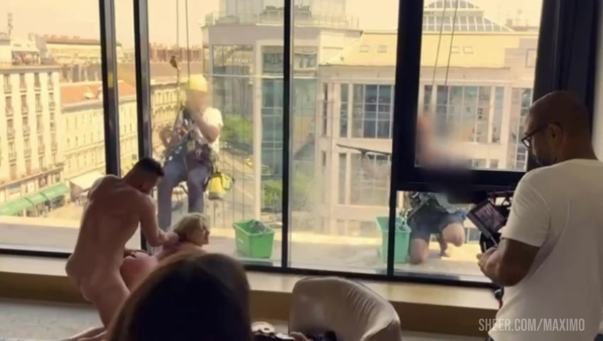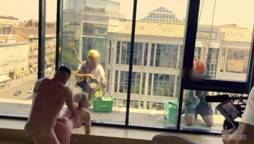 Anal pissing, fucking in front of windows cleaners