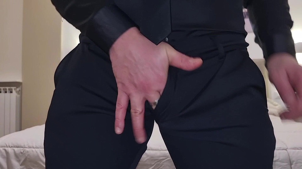 Alexander si masturba con un cazzo enorme e sborra in abito elegante.