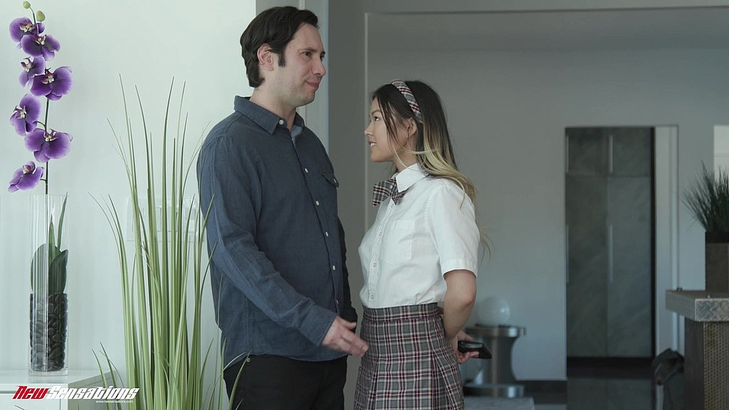 Super cute teen Asian student Lulu greets her stepsis boyfriend Tommy and lets him know she is out with friends and forgot he was coming over and left her behind. Lulu sees his disappointment and suggests he hang around, but Tommy begins to feel uncomfortable, as Lulu begins to come on strong and sneaks a kiss on him. Tommy wanting to leave is convinced quickly to stay as Lulu drops to her knees and deep throats his already hard cock. Amazingly Lulu has Tommy hornier and harder than her sis gets him and he digs in deep into her hot sweet pink wet teen pussy, loving every lick, and fucks Lulu hard and deep. Lulu gets just as crazy with his cock needing more and more until he can pour all his cum down her throat.