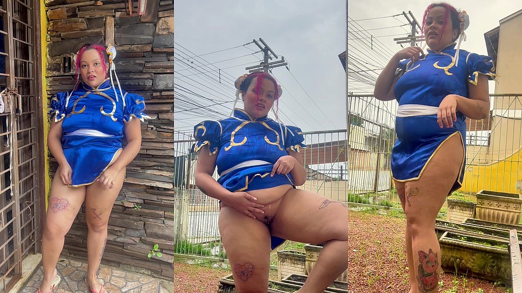 BBW CHUN-LI COSPLAY EXHIBITIONISM IN THE GARDEN