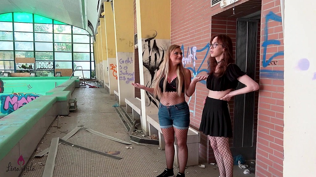 Hier war bestimmt schon länger niemand mehr schwimmen! Wir sind ganz erschrocken, als meine Trans Freundin Emily Adaire und ich ins Schwimmbad gehen. Es ist komplett verlassen und leer. Sogar das Schwimmbecken ist komplett trocken und ohne Wasser, aber zum Glück ist meine Muschi nass. Dürfen wir dann überhaupt hier sein? Irgendwie ist die Situation dann so reizvoll und prickelnd, dass wir plötzlich eine andere Idee für spritzigen und nassen Spaß für heute haben. Sofort küssen wir uns leidenschaftlich und Emilys Trans Schwanz wird hart unter ihrem Röckchen. Ich hocke mich hin und blase dem süßen TS Girl ihren dicken Kolben mitten im Lost Place mit einem saftigen deepthroat Blowjob. Dann setze ich mich auf den Beckenrand und sie leckt mir schmatzend meine saftige und feuchte Pussy. Ein Trans Fick ohne Kondom mitten im verlassenen Schwimmbad? Willig will ich Doggystyle und missionar von ihr durchgefickt werden. Ich stöhne extrem laut vor Geilheit und Orgasmen. Hoffentlich erwischt uns nie