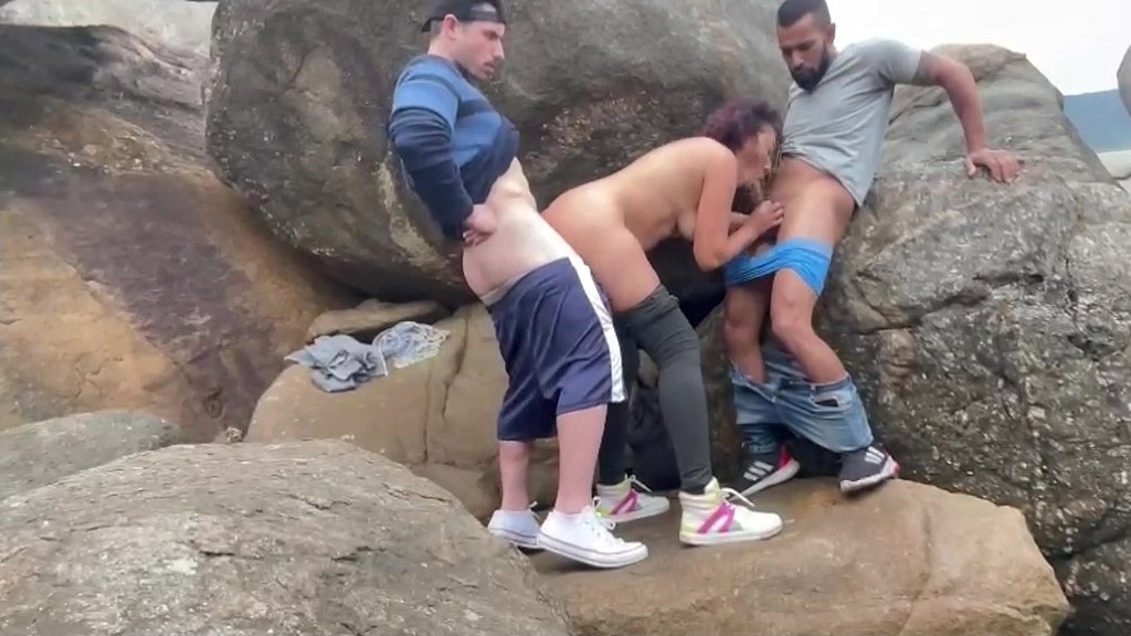CASADA TREPANDO COM DOIS NA PRAIA NA FRENTE DO MARIDO