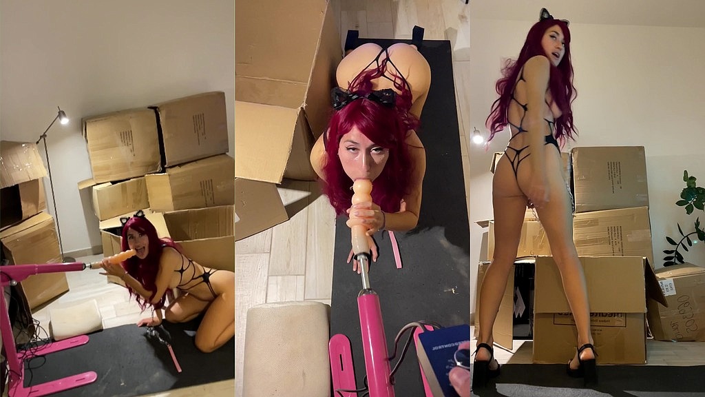 CAT RED FETISH GIRL GOT SEXUALLY AROUSED AND BLOWJOB, SUCKED SEX MACHINE