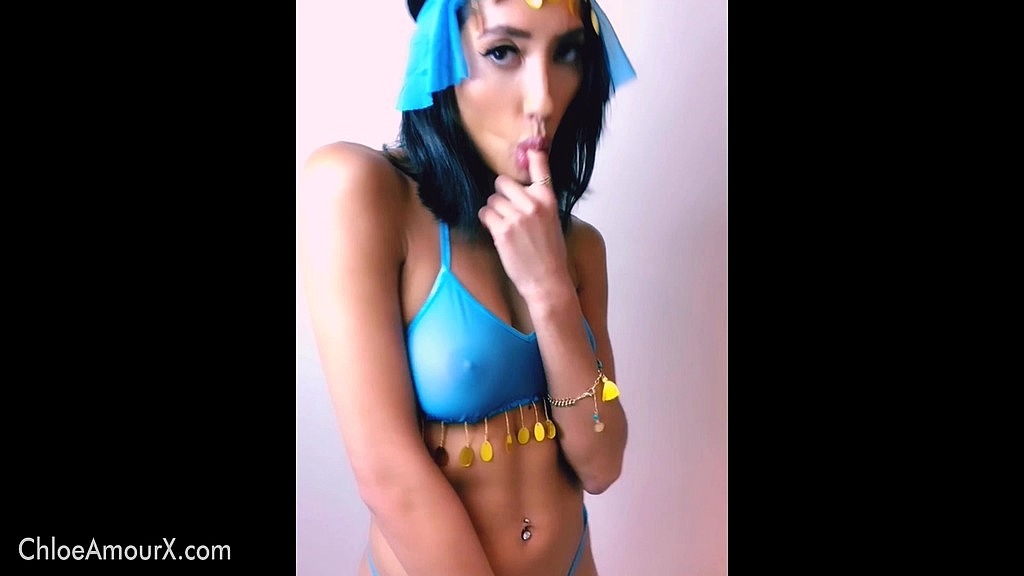 It s Halloween! The time of the year when girls can be whatever they want. Our girl Chloe Amour dresses in her favorite belly dancer costume. The blue, see-through top makes her perky tits look more enticing than ever. It doesn t take long before Chloe shifts her attention from her breasts to her soaking wet pussy. After teasing you with her tits, she slides her blue thong to the site and starts rubbing her pussy like she s trying to entice a genie out. Chloe can t help but moan as her pussy gets wetter and wetter, and she cums for you as her tight body shivers.<br>It s Halloween! The time of the year when girls can be whatever they want. Our girl Chloe Amour dresses in her favorite belly dancer costume. The blue, see-through top makes her perky tits look more enticing than ever. It doesn t take long before Chloe shifts her attention from her breasts to her soaking wet pussy. After teasing you with her tits, she slides her blue thong to the site and starts rubbing her pussy like she s