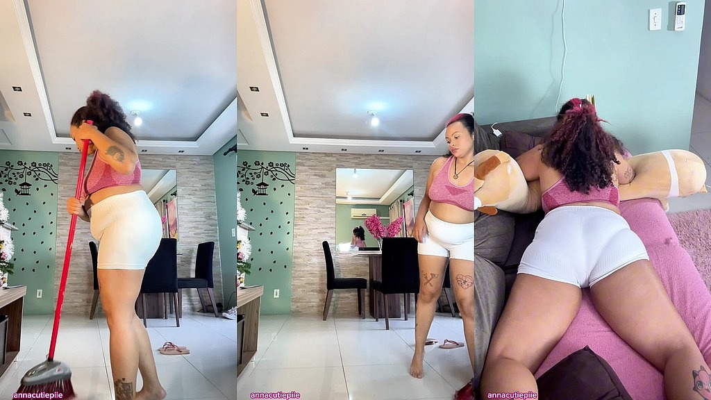 Watch me play the perfect curvy housewife in tiny shorts that ride up my fat ass while I bend over scrubbing floors, dusting shelves, every move making my soft, chubby body jiggle and release deep, muffled farts that fill the whole house with my warm scent. Once everything sparkles, I collapse onto the couch ass up, legs spread, reading my book while even bigger, freer farts roll out slow and stinky as I finally relax and let my greedy booty unload completely.