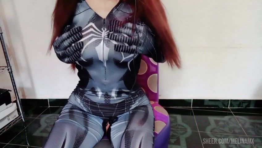 Cosplay Spider Girl masturbandose y llegan a cogersela por el culo