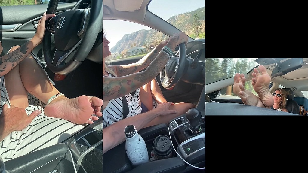 During a road trip, I decided that I wanted a little …“Attention” while I drove. So I slid my flip flops off and kicked up a bare foot, resting it on my leg so that my soft sole was facing him, calling out to be touched! <br><br>He instantly falls for my beautiful sole (wouldn’t you) and begins to lightly stroke, massage and tickle it! Before long, his curious, hungry hand begins to venture north, sliding my summer dress up, to give me that “attention” I wanted … My pussy starts to get wet as he tickles the satin soft material of my blue panties, drawing delicious little circles on my clit as I drive!<br><br>Who else wants to have some frisky fun with me while I drive? Careful, don’t distract me too much ?<br><br>ALSO! How many of you remember that famous foot pic of Brittany Spears?? It’s not an exact recreation of the shot, but it’s pretty darn close! (Also, my facial expression isn’t all nuts like hers was lol!)