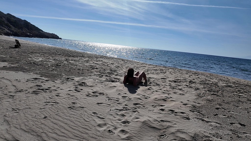 CURVY NUDIST AND VOYEUR ON THE BEACH. FUNNY DILDO! BYE BYE!