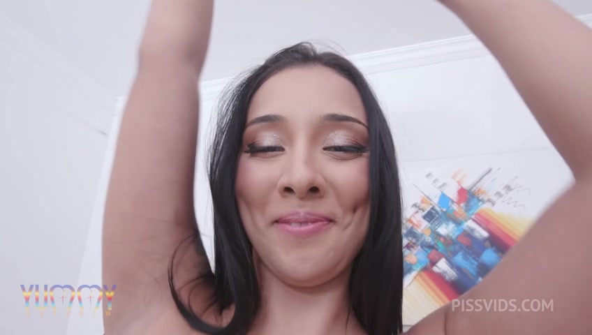 Cute Brazilian Vitoria Beatriz in an Intense scene doing DAP and drinking pee with four studs