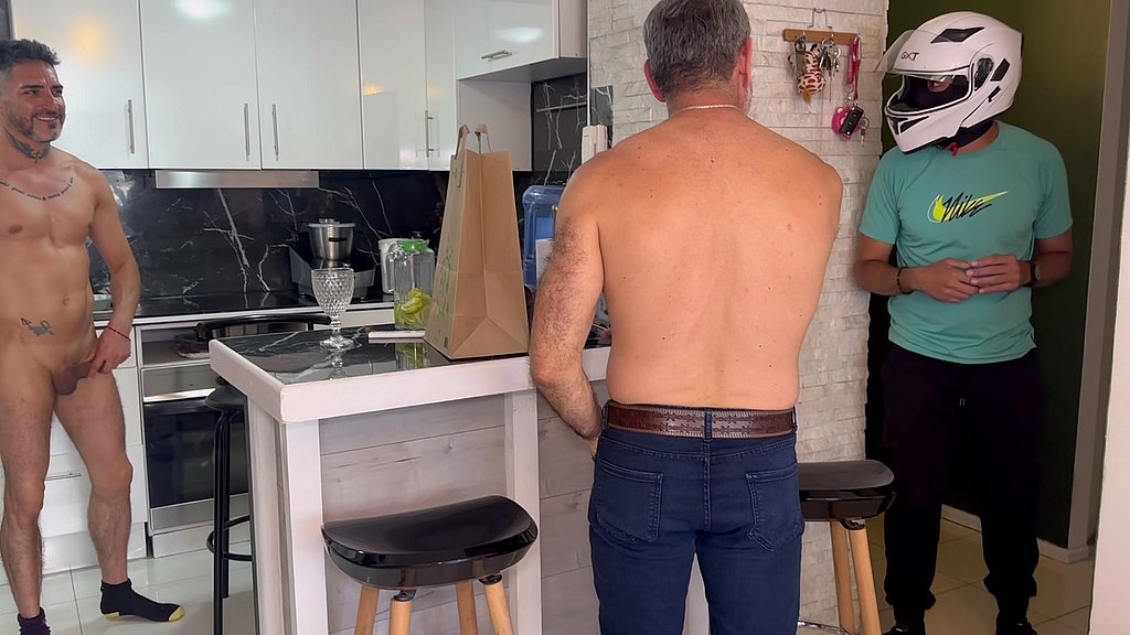 Después de una intensa sesión de sexo con Manuel Keny, el hambre nos ganó y pedimos comida. Pero cuando llegó el repartidor, me di cuenta que no podriamos pagar, para la sorpresa de mtodos, el entregador tenia una segunda intencion y nos facilitó en pagarle, Terminó dandonos no solo la entrega. ¡Mira como nos hace pagar!