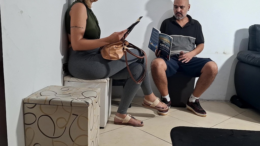 They were in the dentist s waiting room when he took his dick out, hiding it behind the book. Then he changed places, sat next to her and showed her his dick again, letting her see it. The guy was lucky enough for her to like it and touch his penis, suck it, and then show her breasts and let him cum in her.