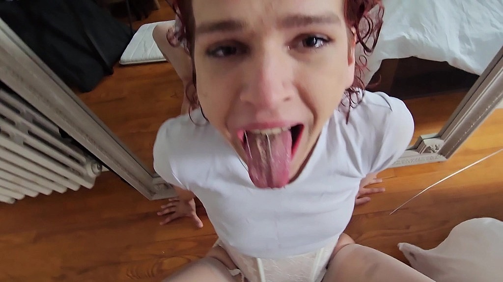 Dressed in white lingerie, Melody goes gaga for her husband s cock, smelling, sucking and deepthroating it until she turns crossed eyed. Messy face-fucking until her face is covered in spit, then they move to the bed and she has her ass fucked and balls slapped while Melody blows spit bubbles and moans in lewd pleasure.