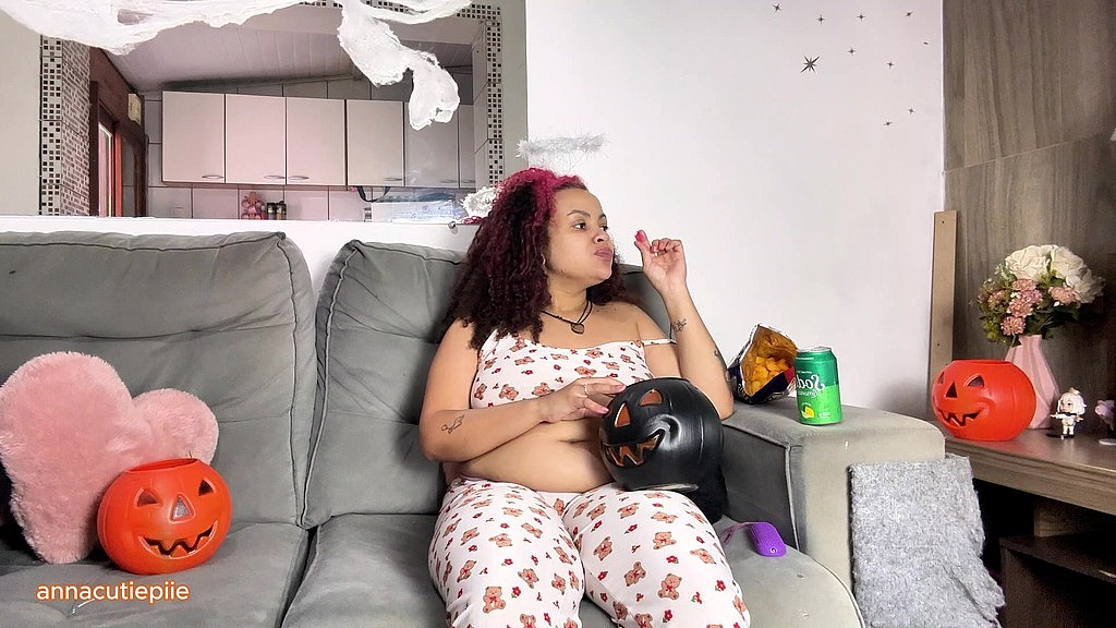 It’s Halloween movie night, and I’m all cozy with candies, chips, and soda. But my belly gets so full of gas that I can’t stop farting and burping while I watch. You’ll see my bloated belly moving, my relaxed face, and hear every messy sound that slips out. A soft, natural and gassy Halloween night with a fat ebony Latina showing all her curves and gas.