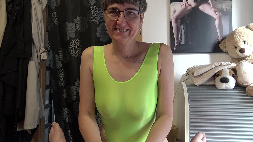 I surprise him in the Bedroom.<br>Have neon colored stockings and a Body that reveals more than it hides.<br>But I feel like it and so does he.<br>So I give him a hot blowjob in the Body.<br>I get so hot that I strip down the body.<br>My play on my Tits makes him really hot.<br>And soon I get his hot Sperm.<br>Leave it in my mouth, play with it and Swallow it all.