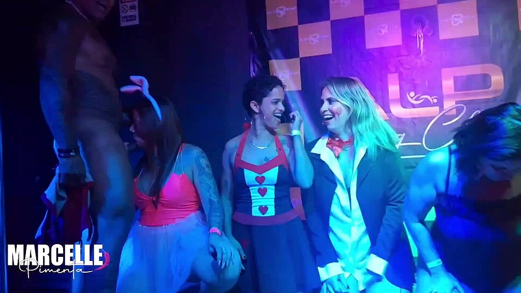 GRUPO DE MENINAS TRANSANDO COM STRIPPER NO PALCO DA BOATE