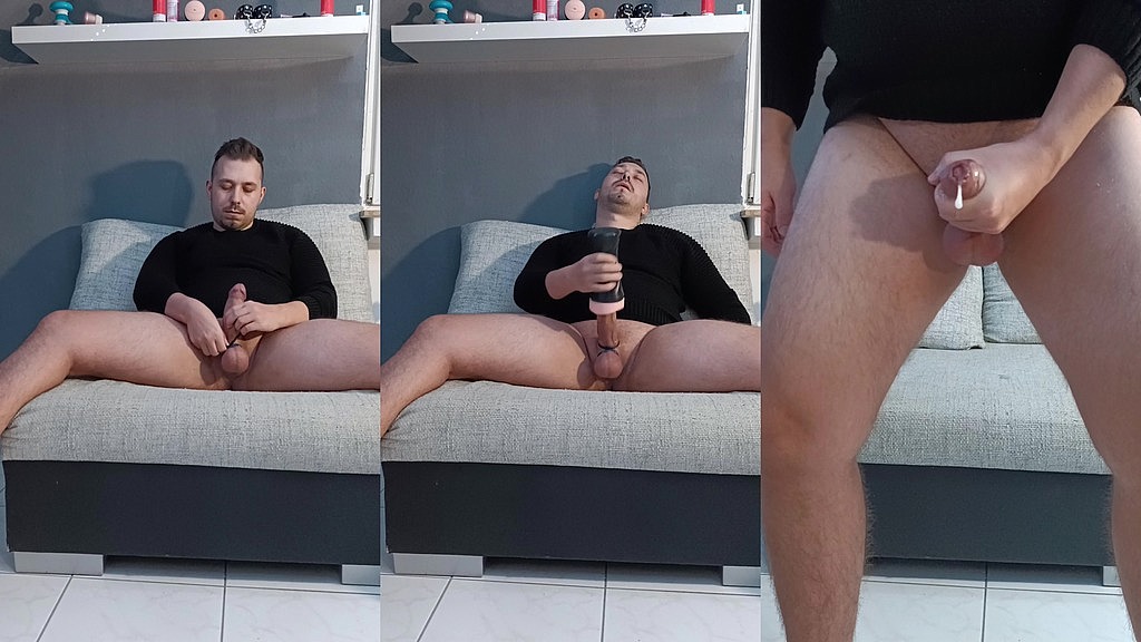 HANDJOB AND CUMSHOT WITH FLESHLIGHT AND COCKRING