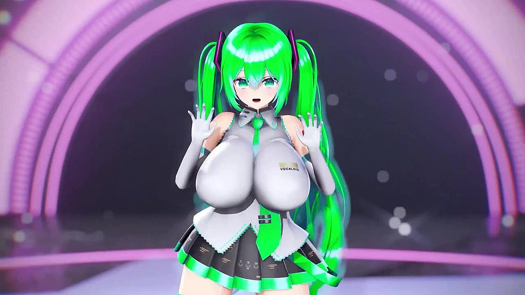 HATSUNE MIKU HUGE BOOBS HENTAI UNDRESS DANCE VOCALOID BIBBIDIBA SONG MMD 3D GREEN HAIR