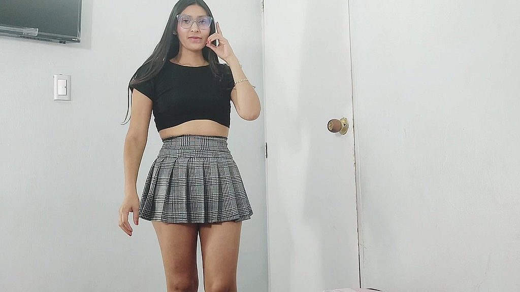 HIJASTRA BIEN CALIENTE VESTIDA DE COLEGIALA LE ENSENA LA FALDA DE COLEGIALA A SU PADRASTRO Y TERMINA ACOSTADOSE EN SU CAMA.