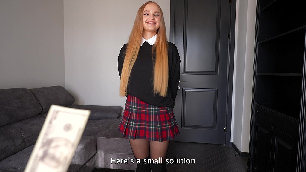 She shows up horny and ready to do anything for her exam. Dropping to her knees, she takes his cock deep in her throat, sucking harder and harder until she’s dripping wet. He bends her over and pounds her tight pussy until she’s moaning like crazy, finishing with a hot creampie inside her.
