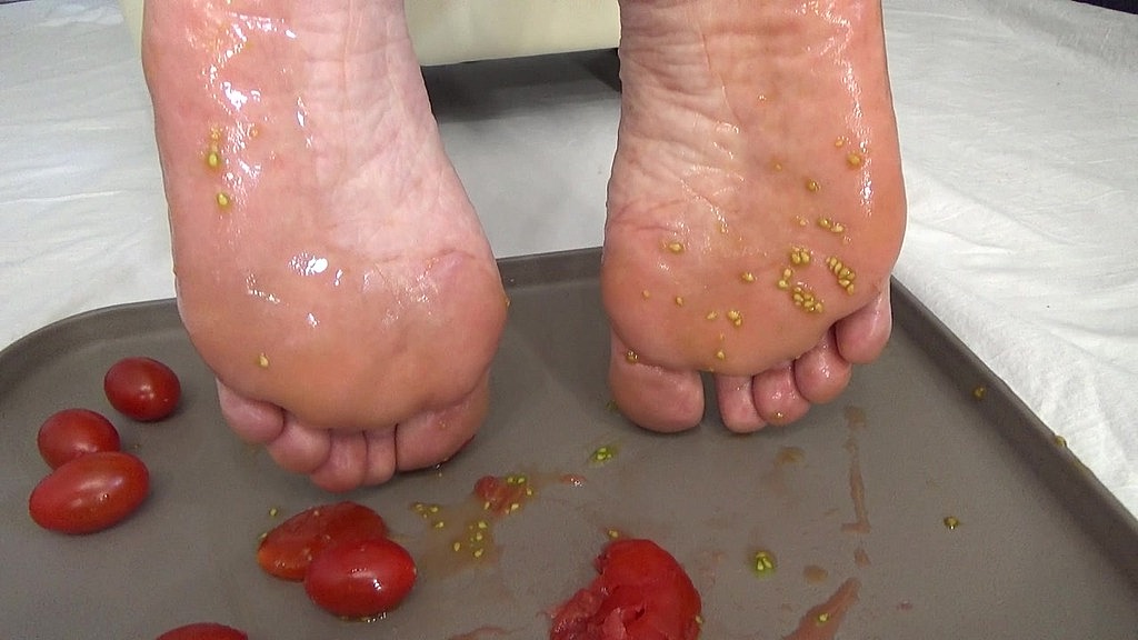 I PLAY WITH TOMATOES IN MY PUSSY AND TRAMPLE THEM WITH MY FEET