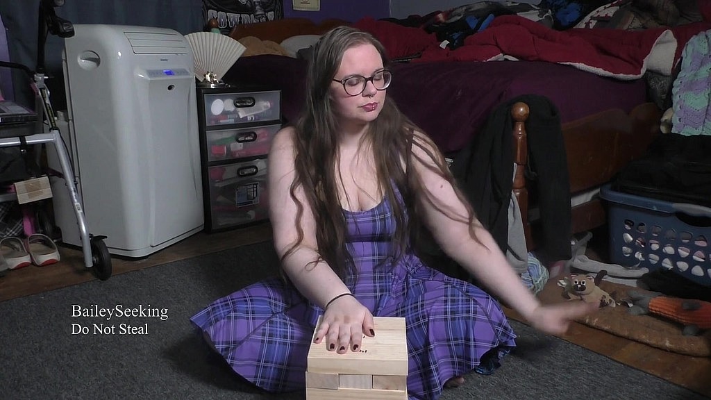 A nice quick game of Jenga with some humiliation fun added. I ll push out blocks until the whole thing falls down. Then I ll read the number on the block and the humiliation that goes with it. And you can play the video over and over again until it finally sinks in.<br><br>This clip is HoH/Deaf and Low Vision/Blind accessible.<br><br>This clip features subtitles.