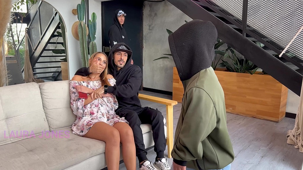 LAURA JONES MUST GIVE A BLOWJOB TO FOUR THIEVES WHO BROKE INTO HER HOUSE UNTIL THEY COME IN HER FACE
