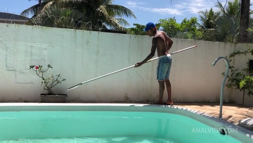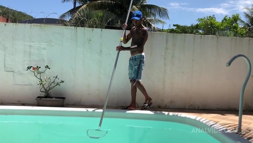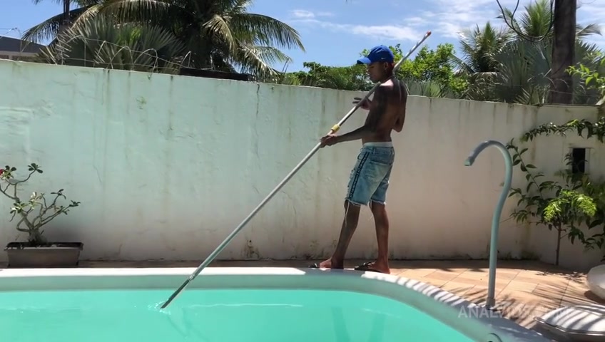 Limpando piscina e so esperando a dona da casa vacilar pra eu empurrar a piroca grande na patroa