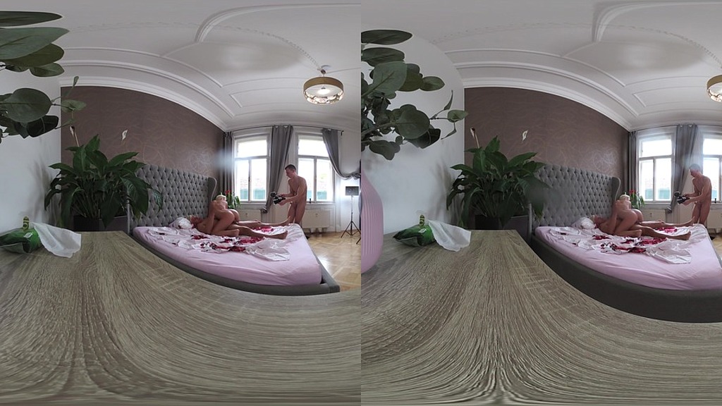 The third and final part of this epic virtual reality (VR) version of sexy nympho Lovita Fate going wild in her first gangbang. This unedited version is filmed from a behind-the-scenes aka voyeur angle so you can experience what it is like to direct a porn scene. The wild trilogy with Lovita Fate concludes as the stunning beauty decides she wants to live out one of her wildest fantasies, having a gangbang. Lovita Fate met Charlie Dean, Porno Dan, and Matt Bird while working out and came back to their place in Prague for some fun. The tan blonde with a big ass is determined to make all three men give her their sperm. Monster cock Charlie is the first to bang the big booty baddie and he rams and rails Lovita Fate until he shoots his cum inside her. Next, muscle-bound Matt gives Lovita Fate a hardcore hammering with his huge cock and unleashes a big cumshot on her tight tummy. Porno Dan bats cleanup for three amigos and then makes the perfect body blonde orgasm so hard she screams and shake