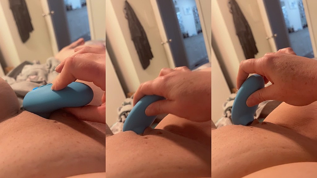 After only 10 minutes of edging... I have a HUGE orgasm that lasts a bit. Came just in time before the baby interrupted too.