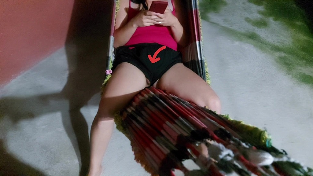 Distracted stepmother doesn t notice her pussy outside her shorts while she s in the hammock and makes me have an erection!