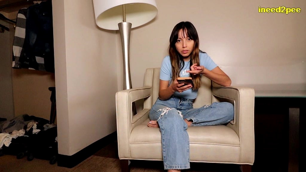 <b>NOTE: Annalynes acting and improv abilities aren t the greatest. I ve pieced it together as best I can.</b><br>Your step-sis is chilling in the hotel room while step-moms taking a shower, but you really should have gone pee first. You re really struggling to hold it and Annalyne notices, totally calling you about about your squirming, peepee dancing and crotch grabbing. A little spurt of piss leaked out and she sees it! Oh no... more is coming out and it s harder to stop it. Soon you re flooding your pants, wetting yourself and it s running over the carpet & Annalynes shocked & taking pictures of your wet pants. She s grossed out and not amused!