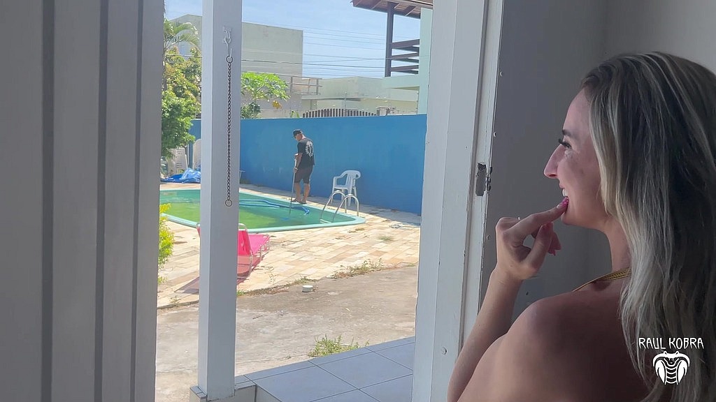 MARIDO SAI DE CASA E ESPOSA LOIRA INFIEL DEU A BUCETA PARA O PISCINEIRO