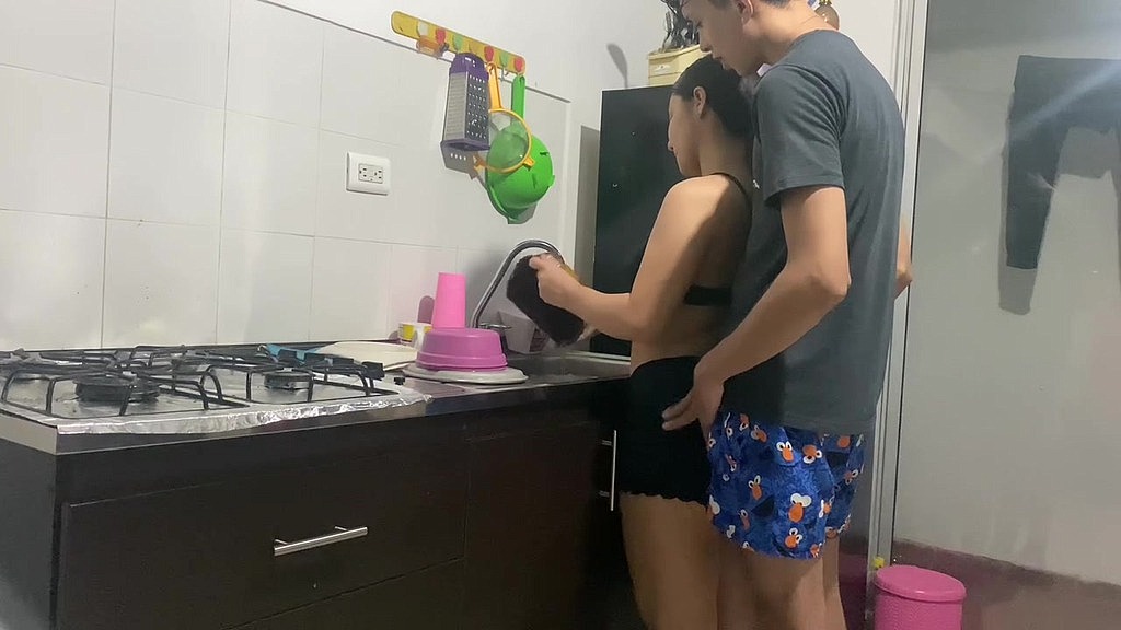 MI COMPAÑERA DE CUARTO ESTA EN LA COCINA COCINADO MI COMIDA Y APROVECHO PARA FOLLARMELA