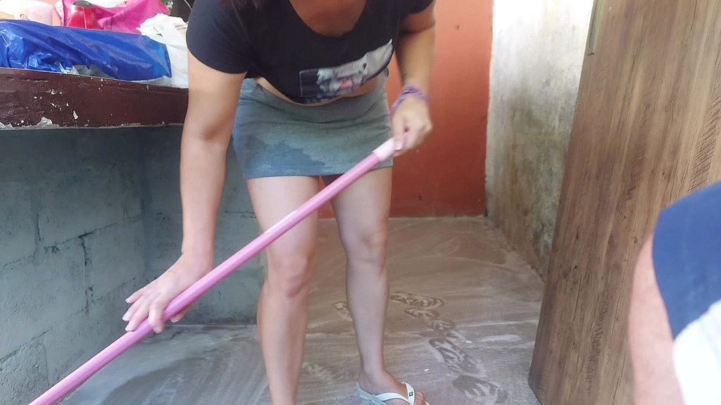 MINHA ESPOSA SAIU E A EMPREGADA BAIXINHA GOSTOSA PEGOU MEU PAU E COLOCOU DENTRO DELA NA AREA DE CASA