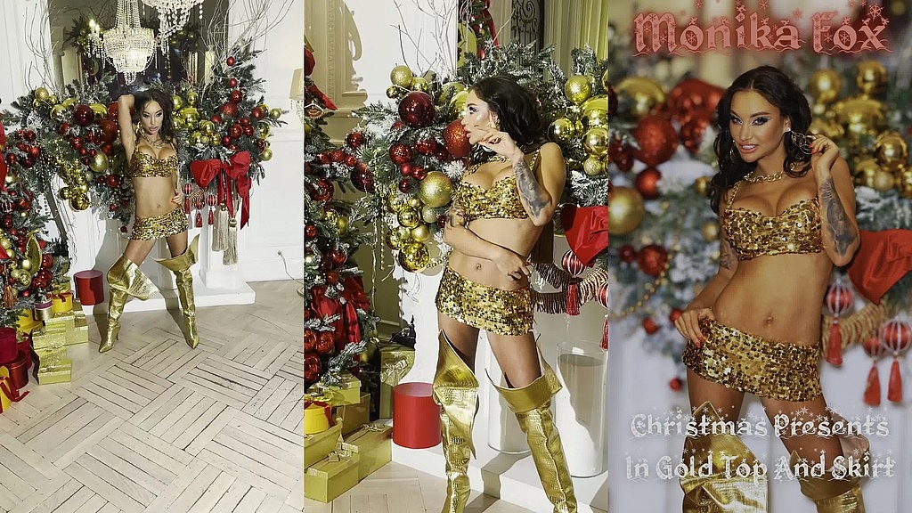 MONIKA FOX CHRISTMAS PRESENTS IN GOLD TOP AND SKIRT
