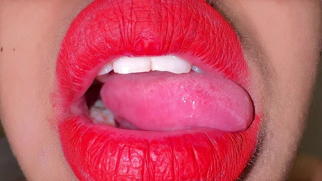 MOROCCO 18YO HOT GIRL LICKING HER MOUTH JUICY & ASMR MOVEMENTS TONGUE WITH RED LIPSTICK