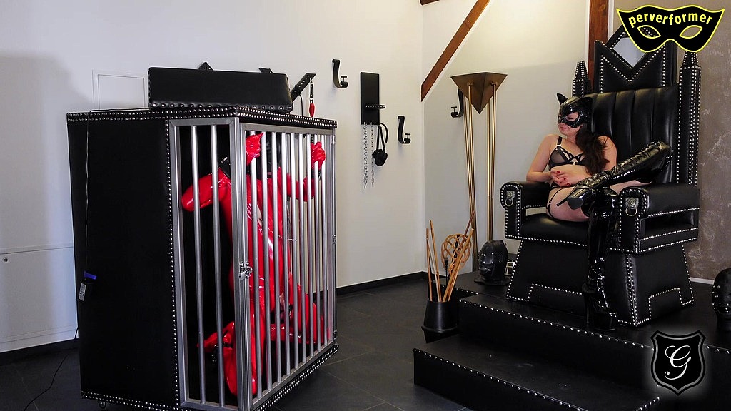 Canvas survived the first night at Der Gutshof . Miss Yara, his mistress strides to his cage and begins to make his powerless situation even more clear to him. Through the mask, the slave is blindfolded. It is not possible for him to avoid the cane with which she pies his balls and cock.<br><br>But she does not leave it at that. Quickly the nipples are attached to the bars of the cage, forcing the slave into an uncomfortable position. As if that wasn t torment enough, Miss Yara wraps a rough rope around the slave s balls and pulls it tight.<br><br>The slave squeals in pain and horniness. When she also attaches the rope to the bars, his control is gone. He comes despite penis cage and without stimulation. Much more tragically, however, also without authorization.<br><br>This naughtiness does not go unpunished. Miss Yara determines the punishment. The slave must remain 10 min in uncomfortable position in the cage. Quickly the arms are fixed behind the back so that the slave strangles hi