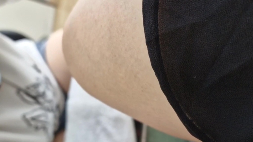 My friend gives me a pedicure in the shop