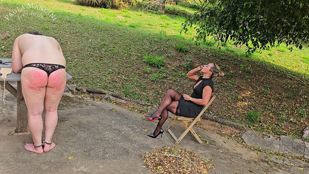 He is a disobedient sissy, that s why he was punished. <br>While I smoke with pleasure to see you.<br> Turning me on by moving my heel and lighting my cigar