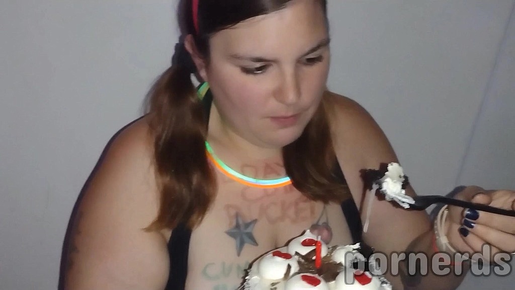 NASTY SLUT SCARLETT EATS 11 LOADS ON HER BIRTHDAY CAKE AT ADULT VIDEO ARCADE!
