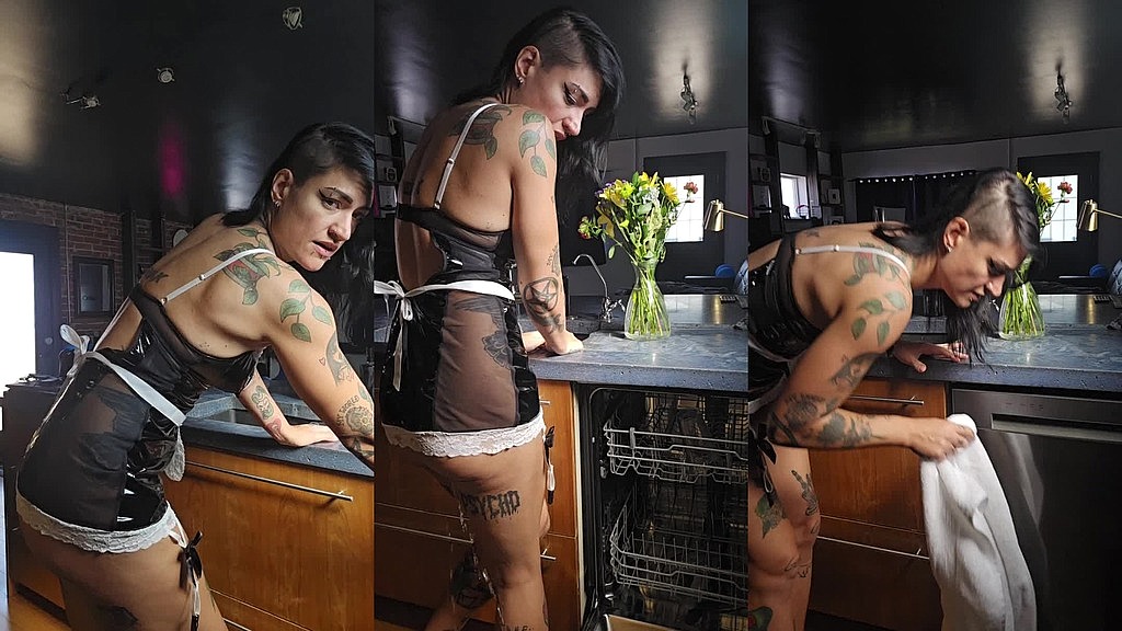This naughty maid REALLY had to pee while washing the dishes…she pees all over the floor and in the sink! Just another mess to clean up!