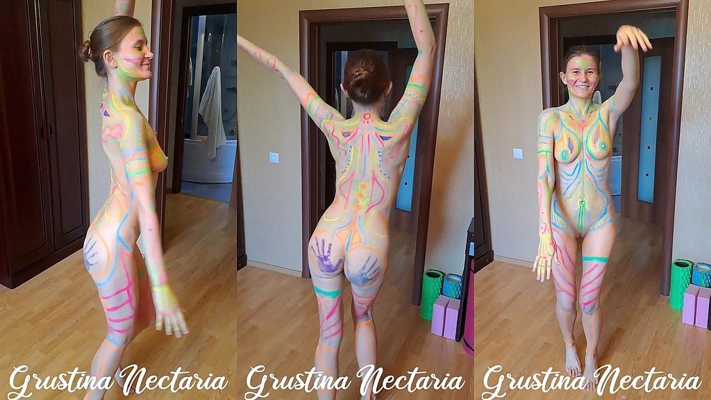 NUDE BODY ART. NATURAL BODY AND PERFECT TITS TOUCHING