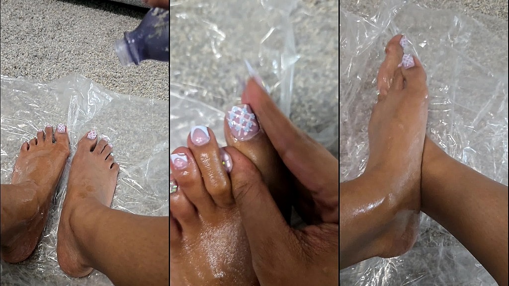 OILING UP MY SEXY, LONG, GORGEOUS TOES!!