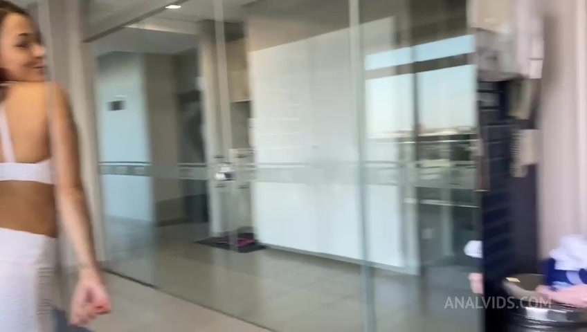 Personal trainner giving the brunette a dick workout