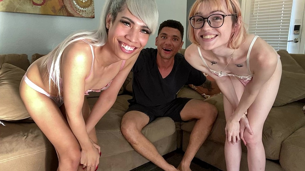 PETITE TRANS GIRL BESTIES CLAIRE GEMINI & ITZEL SAENZ TAKE TURNS BLOWING HUGE COCK