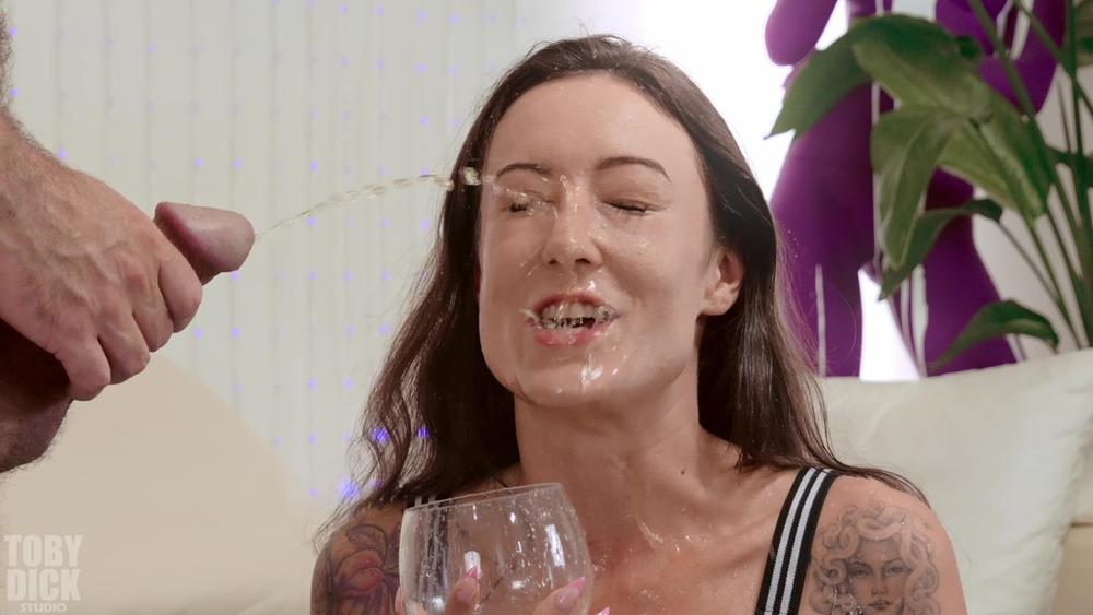 Drinking piss from a glass