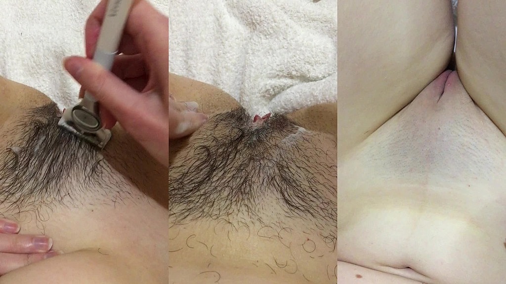 POV GIRL SHAVES VERY HAIRY PUSSY CLOSE UP. SHAVED PUSSY, SHAVED PUBIS